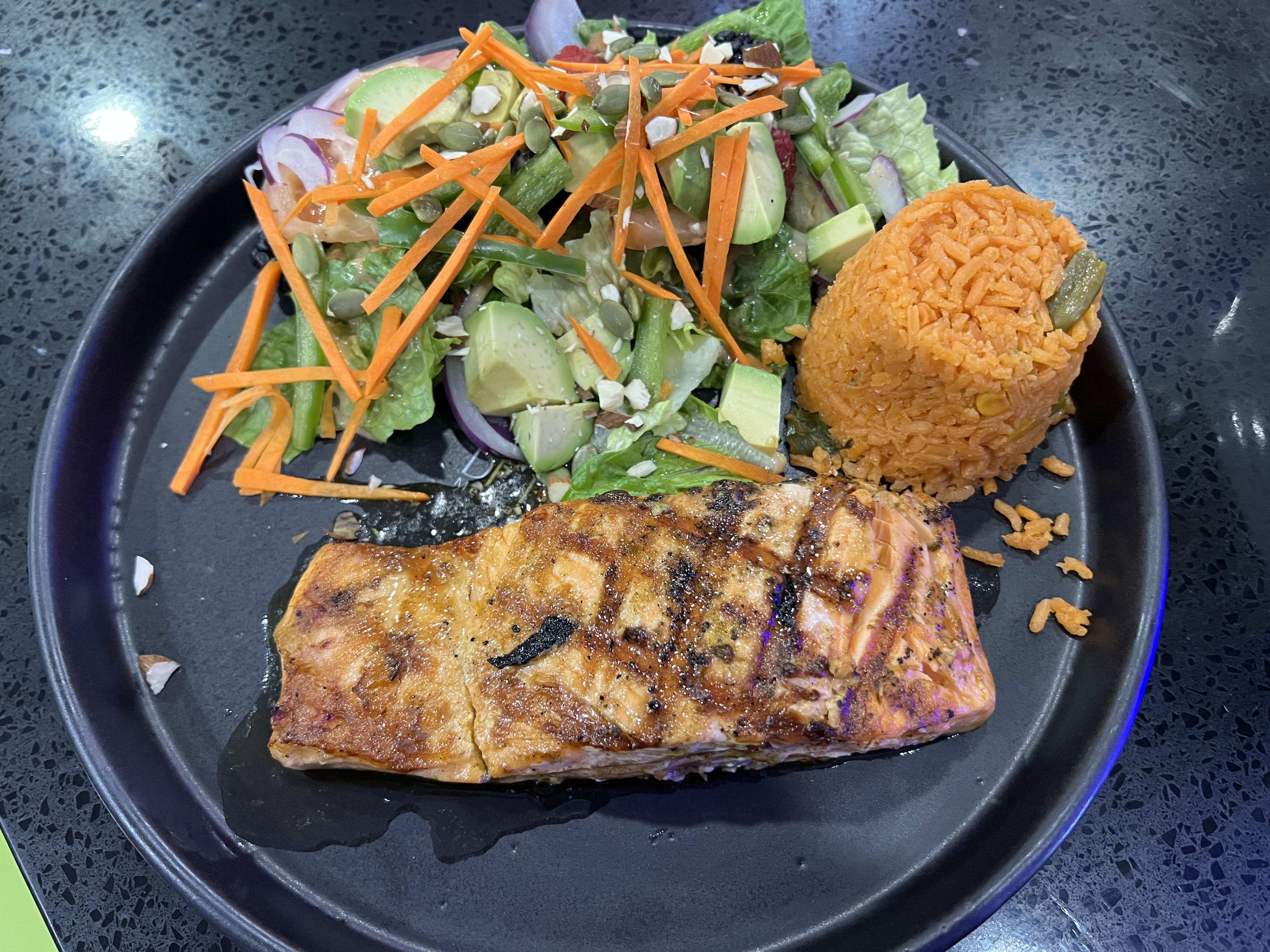 Perfectly seared Alaskan salmon served with your choices of sauce on top: • Veracruzana- a sweet and sour blend. • Garlic / Mojo de Ajo— A garlic lovers’ dream. • Zarandeados—zesty cream sauce • A la Diabla— fiery and bold A dish that dances between tradition and innovation.