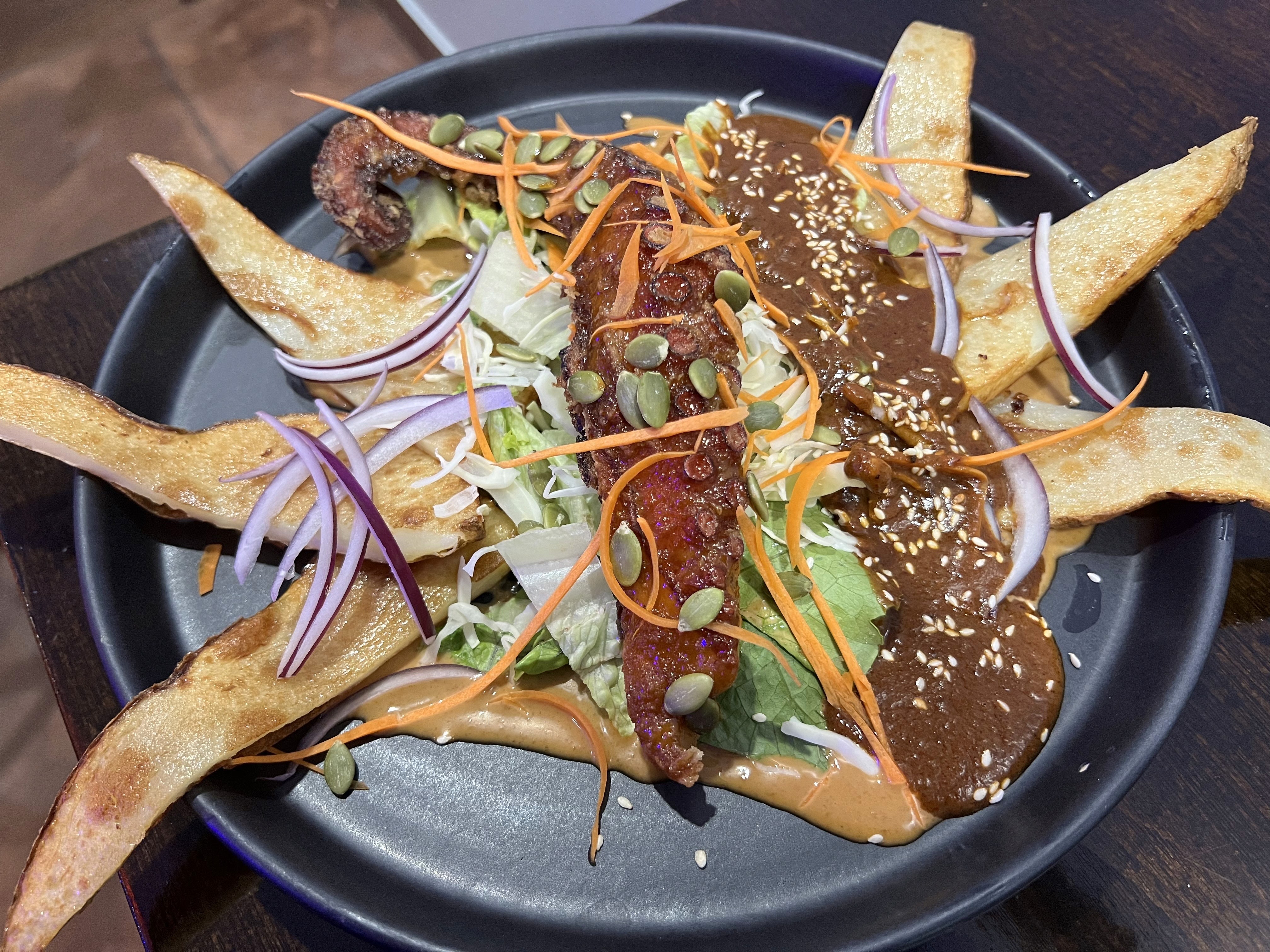 Crispy cauliflower fried and tossed in various house salsas that include spices. A fiery twist on plant-based comfort.
